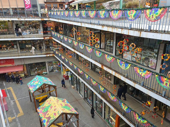 어느 각도에 찍어도 독특한 모습을 하고 있는 쌈지길이라 그런지 자연스럽게 이곳은 포토존의 성지가 되는 것 같다. 물론 계절에 관계없이 말이다. 겨울이라 삭막할 것 같았지만 그에 맞게 인테리어를 잘 꾸며 놓아 그런 느낌은 전혀 없고 포근한 느낌이 많이 들었었다.