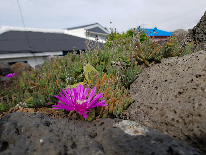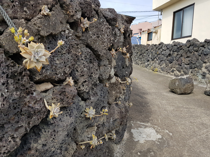 돌담 곳곳에 심어 놓은 다육이도 어찌나 이쁘던지.... 밋밋한 돌담에 생기를 불어 넣은 것 같아 보기 좋았다.