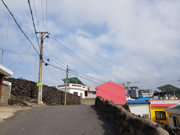 제주도 오래된 마을이나 동네에는 재생사업이란 명목으로 오래된 건물이나 벽에 벽화를 그리는 곳이 많다. 이곳도 그랬다. 그래서인지 알록달록한 색감의 벽화가 마을을 더 화사하게 만들어주고 있는 것 같았다.