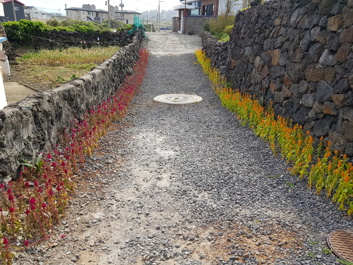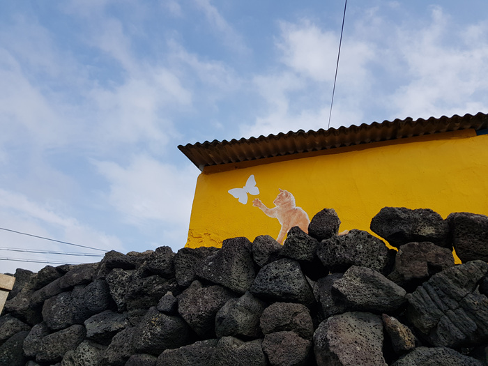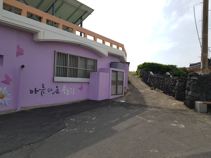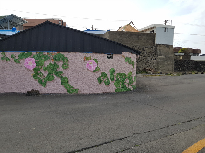 제주도 오래된 마을이나 동네에는 재생사업이란 명목으로 오래된 건물이나 벽에 벽화를 그리는 곳이 많다. 이곳도 그랬다. 그래서인지 알록달록한 색감의 벽화가 마을을 더 화사하게 만들어주고 있는 것 같았다.