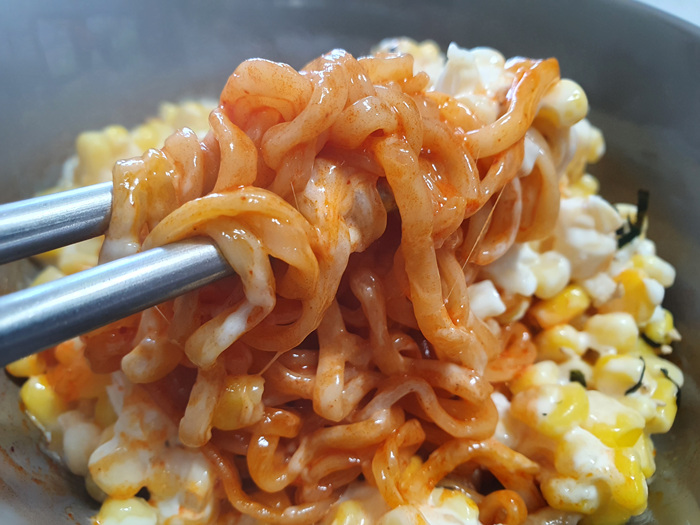 푸짐한 옥수수와 치즈때문인지 더 맛있더라고요. 단, 컵라면 불닭볶음면과 달리 면이 너무 퍼진 듯한 느낌이 들었습니다. 컵라면으로 된 불닭볶음면은 아무리 많이 불려도 면이 불지 않고 쫄깃한 느낌이 먹는 내내 들었는데 일반라면으로 된 불닭볶으면은 퍼지게 면을 삶지도 않았음에도 면 자체가 너무 불게 느껴졌네요. 개인적으로 컵라면으로 된 불닭볶음면이 훨씬 괜찮은 맛이었습니다. [ 내돈내산 리얼후기 ]