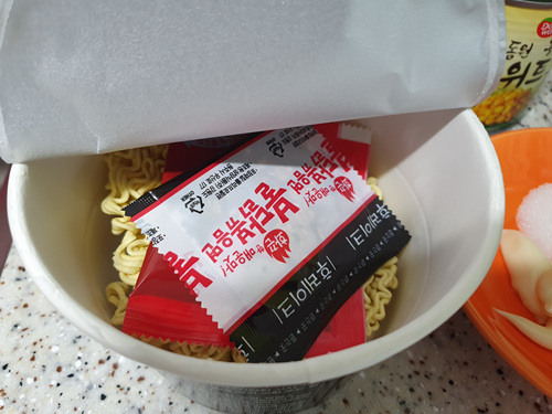 마트에 가니 불닭 볶음면이 품절되어 전 컵라면으로 대체해 봤습니다. 맛은 뭐 거의 비슷하니까.....
