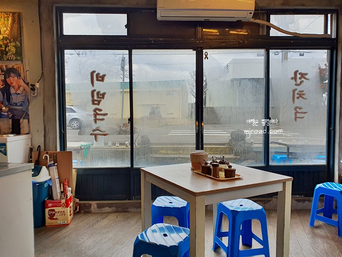 점심시간이 되었고 쯔양이 왔다간 국수집 치고는 너무 조용했다. 보통 유명 연예인이 왔다간 음식점은 사람들로 북새통을 이루거나 웨이팅이 기본인데 그런 느낌이 전혀 나지 않았다. 실내는 그리 크지 않다. 네 명이 앉을 수 있는 테이블 3개랑 두 명이 앉을 수 있는 테이블이랑 방에서 식사를 할 수 있는 공간이 전부다. 근데 남자 사장님 혼자 운영하는 곳이라 그런지 위생에는 조금 신경을 덜 쓴 느낌이 많았다. 국수 담아 나오는 식판도 언제 닦았는지 더러워 놀랐다. ^^;;;