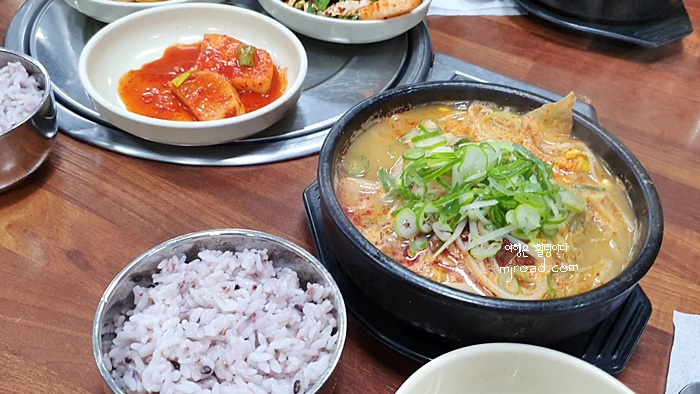 제주도에서 아침으로 해장국 한 그릇이면 하루가 든든하다라고 할 정도로 푸짐하다. 무엇보다도 고기도 듬뿍 들어 있고 뜨끈한 국물을 좋아 한다면 해장용으로 이만한 한 끼가 없을 듯 하다. 물론 가족단위 손님들도 많이 오니 이곳은 다양한 연령층을 만날 수 있는 그런 밥집인 셈이다.