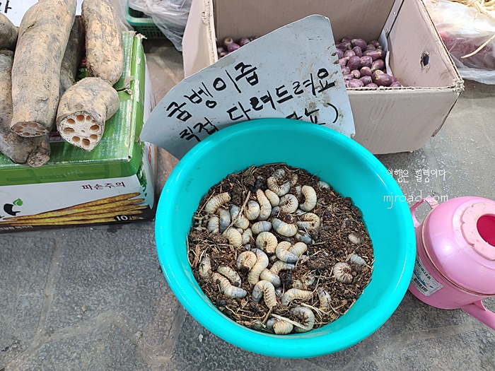 뜨아!!!!!! 살아 있다. 왜 이렇게 통통해! 굼벵이즙도 직접 다려 준다는 대정오일시장