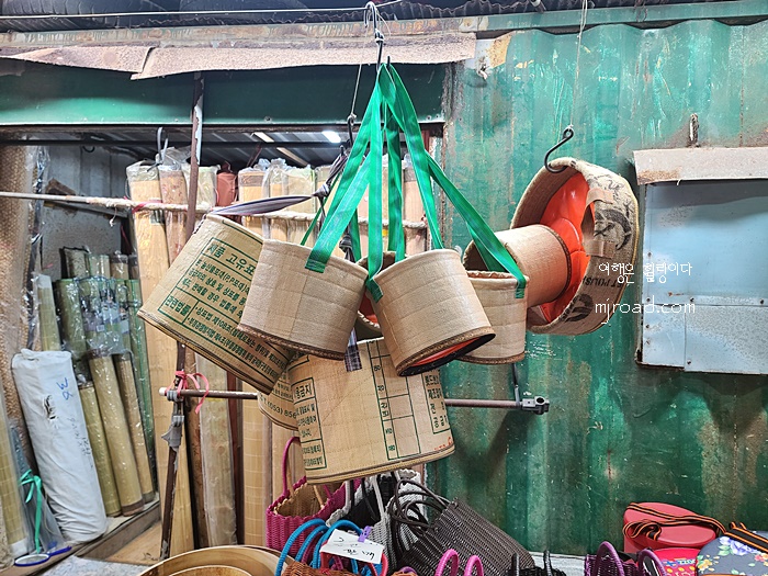 피크닉 가방과 비슷하게 생긴 이 용도는 고사리, 감귤등을 따서 담는 바구니인 듯했다. 주문제작까지 된다고 적혀 있는 것이 재미있게 보이기도 했다.