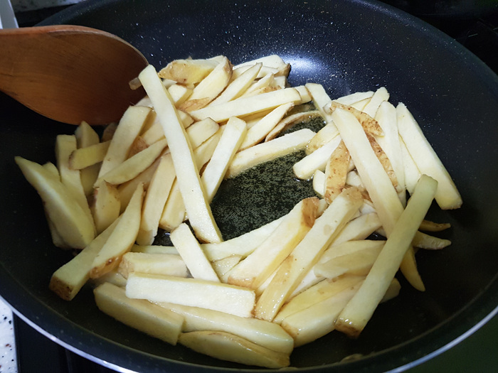 그런데 오일에 볶으니 마치 튀긴 듯이 감자가 프라이가 되더라고요.