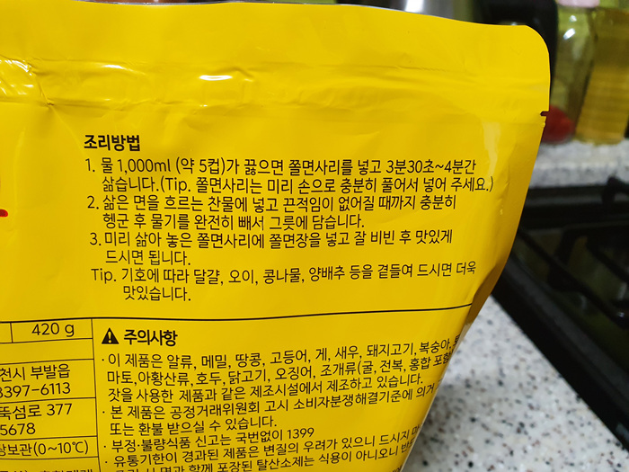 조리방법도 자세히 나와 있습니다. 쫄면은 쫄면 사리를 잘 삶아야 하는데요. 약 4분 정도 끓는 물에 넣고 조리하면 됩니다.
