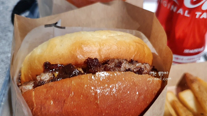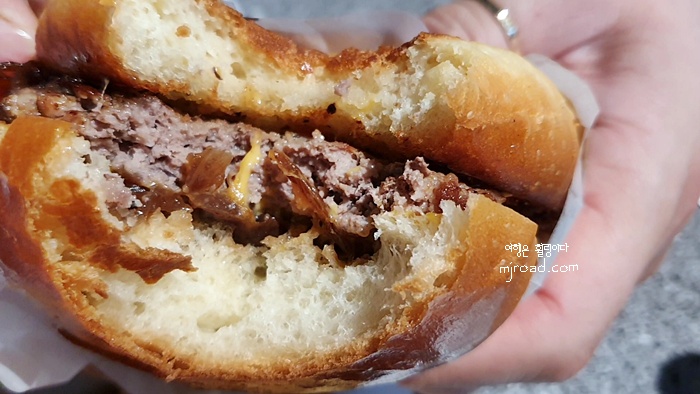 빵과 패티가 전부인듯 하지만 한번 먹어보면 빵의 겉바속촉과 패티의 풍부한 식감과 맛에 그저 미소가 지어진다.