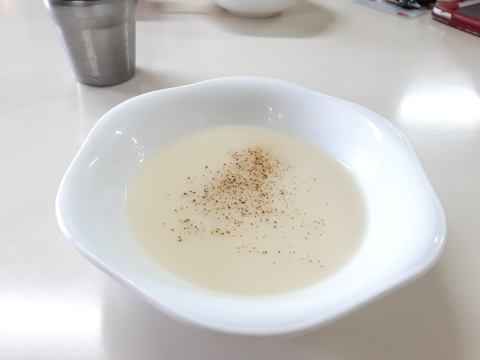 자리에 앉자마자 이집에서 유명한 왕돈까스를 주문했습니다. 주문과 동시에 나오는 스프...마치 옛날 추억의 경양식집 같은 분위기입니다.