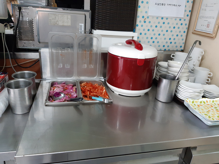 종업원이 여러명 있긴 하지만 반찬과 국은 셀프로 갖다 먹어야 합니다. 요즘에는 셀프가 대세다 보니 익숙한 풍경같기고 합니다. 사실 먹고 싶은 찬만 갖다 먹는게 남기지 않고 좋은 현상이기도 하지요.
