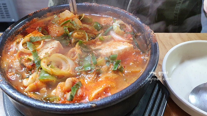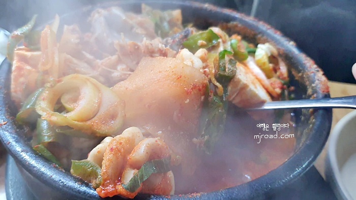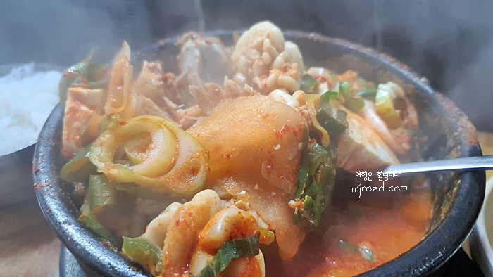 뚝배기도 큰데 내용물도 정말 충실하다. 그렇다보니 밥 한 공기가 모자랄 정도이다. 물론 공기밥은 무료로 리필해 주니 편하게 주문하면 된다.