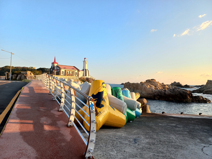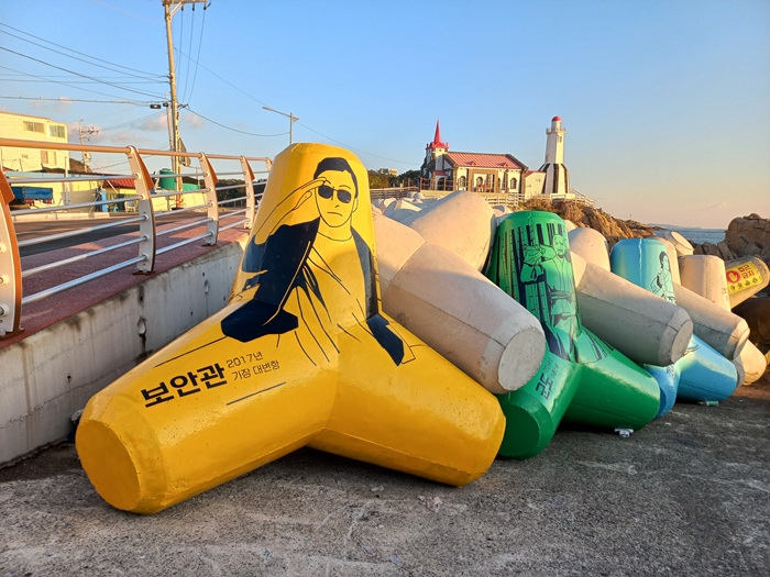 회색빛 방파제 구조물이면 왠지 삭막한 느낌도 없지 않아 있었는데 이렇게 눈에 띄는 색에 그림까지 그려져 있으니 조금은 안전상 그 주위에 올라가지 않을 듯도 합니다.