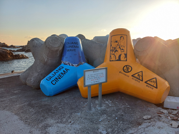 기장에 가면 독특한 방파제 구조물이 사람들의 이목을 집중시킵니다. 대부분 바다에서 보던 방파제 구조물은 회색빛을 띈 시멘트 구조물 형식인데 여기에 있는 방파제 구조물은 조금 다르더라고요.