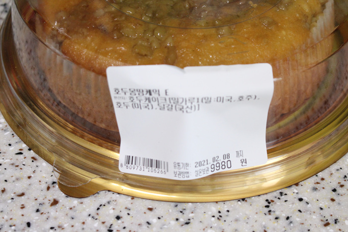 호두가 위에만 토핑으로 올려져 있는 줄 알았더니 케익 속에도 호두가 들어 있습니다. 이거 완전 잘 샀는데요..