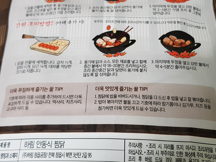 찜닭을 더욱 맛있게 즐기는 꿀팁까지 꼼꼼히 적혀 있네요. 음식점처럼 밥을 볶아도 맛있을 것 같은 생각이 드네요.