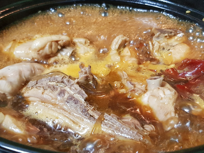 다 먹은 후에는 국물에 밥을 비벼 먹어도 맛있겠다는 생각이 들었지만 닭이 은근히 많아 닭만 먹어도 배가 불렀습니다. 닭을 요리한 후 색이 그대로라 조금 당황하긴 했지만 맛은 좋았네요.. ^^