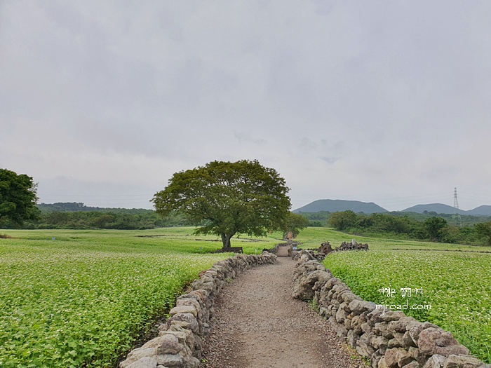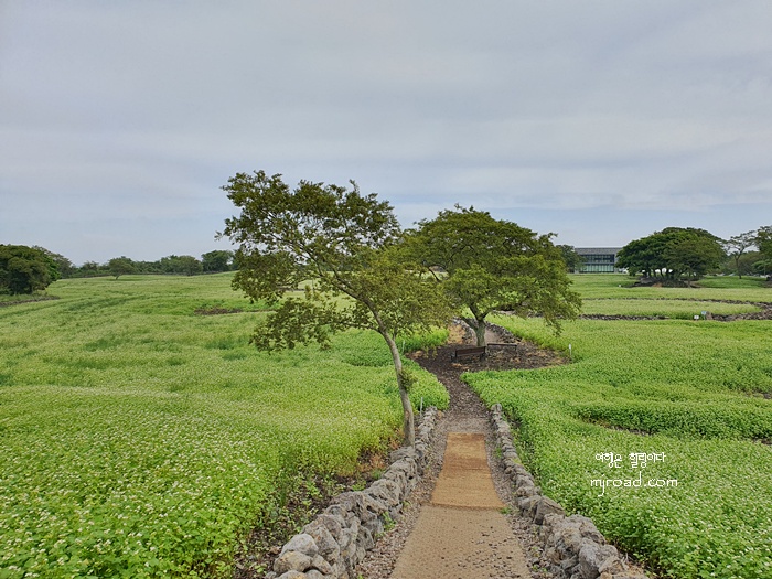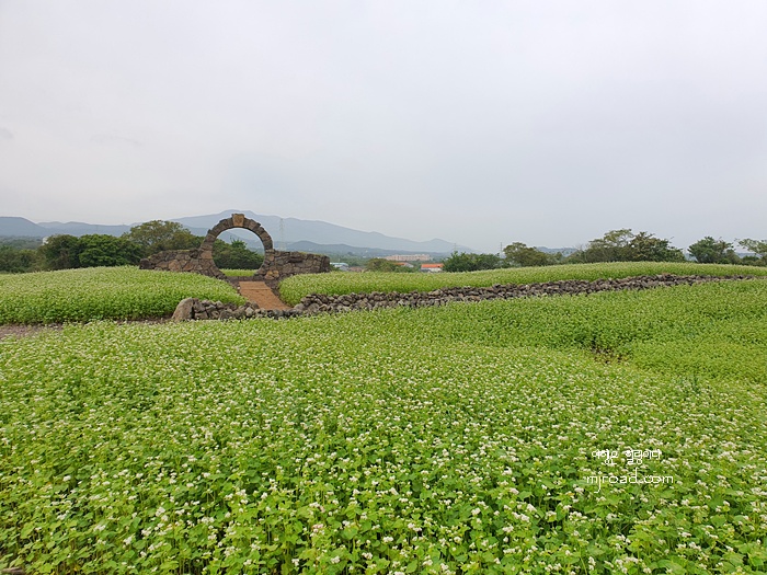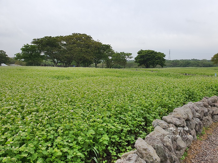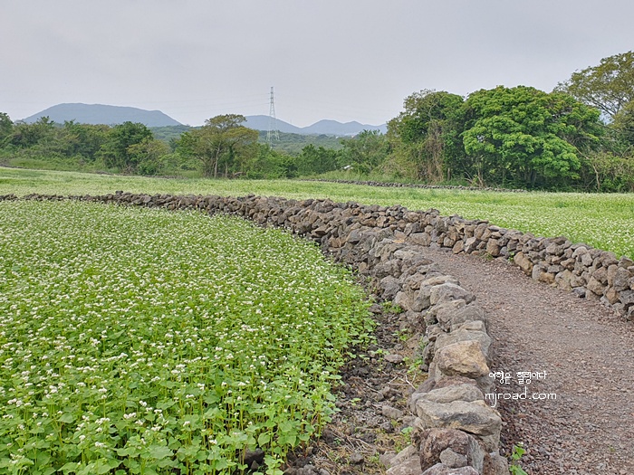 제주스럽게 돌담으로 길을 터 놓은 것이 매력적인 메밀밭이다.