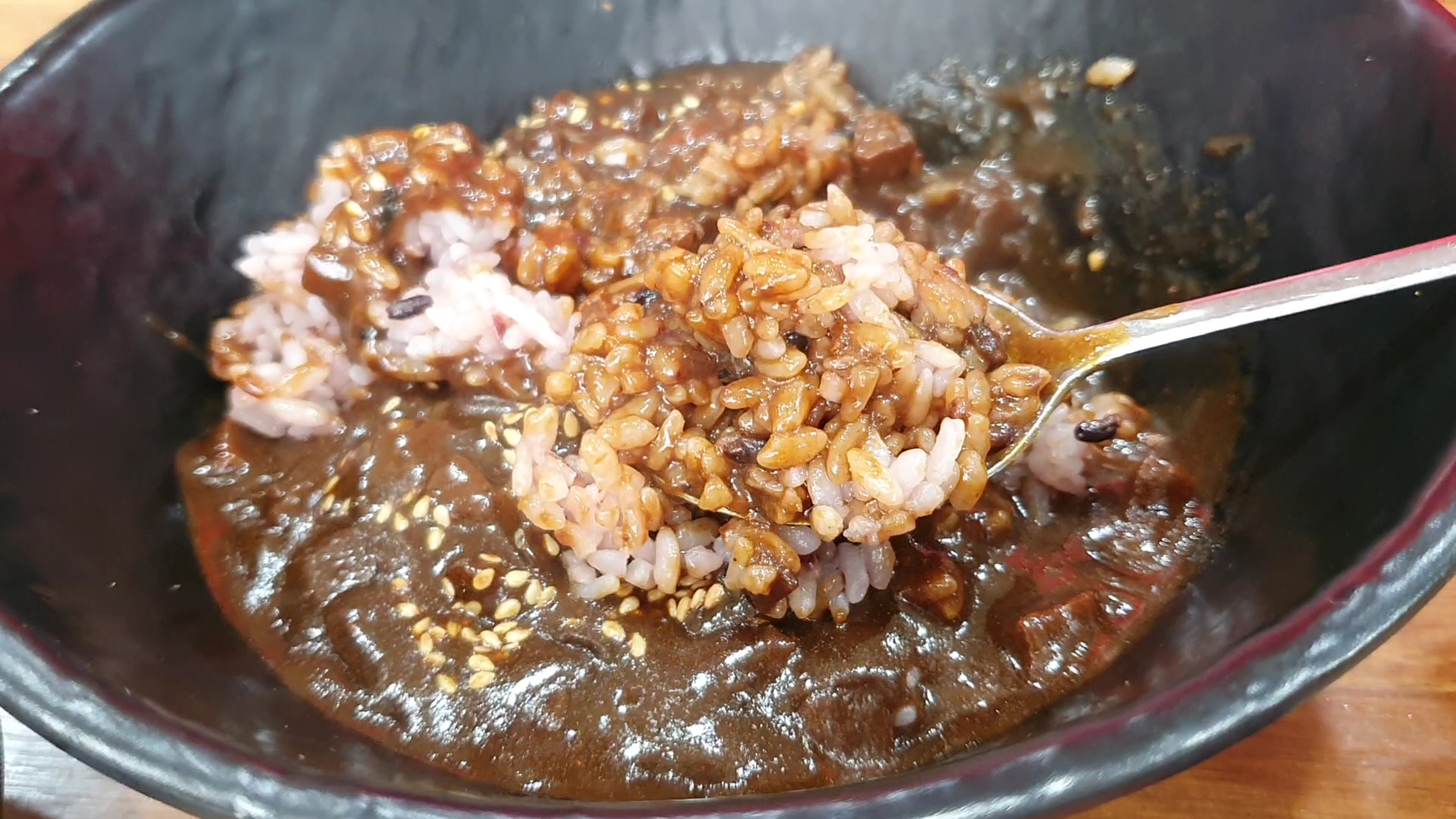 그런데 짜장밥을 한입 먹고나서 깜놀 했어요. 완전 시중에 파는 오뚜X 3분 짜장 맛과 거의 99% 흡사해서 말이죠. 하여간 적잖게 당황한 메뉴였습니다. ^^;;;;;