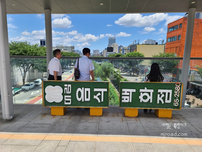 처음 가 본 공중 보행길은 나름대로 기존의 건물들과 조화롭게 잘 설치되어 그 주변으로 많은 사람들이 생활의 터전으로 때론 삶의 휠링 공간으로 사용하고 있었다.