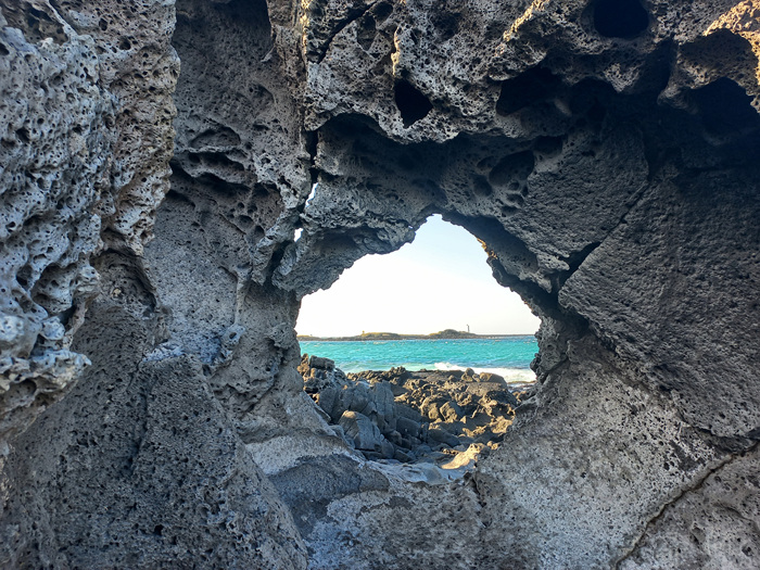 제주도 아름다운 바다를 배경으로 있는 창꼼바위 정말 이색적인 제주도 핫플레이스입니다.