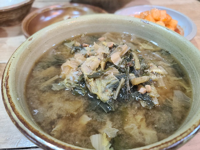우린 팥칼국수 하나랑 시락국밥 하나를 주문했다. 시락국밥은 6,000원이다. 그냥 시락국에 밥을 말아 나오는 정도다. 손님들이 많지도 않았는데 팥칼국수에 들어간 팥이 뭉터기로 있었다. 주인장이 바뀐걸까? 왜 이러지? 하는 생각이 들었지만 된장을 뭉터기로 들어 있는 것이 아니니 그냥 잘 으깨어서 먹었다.
