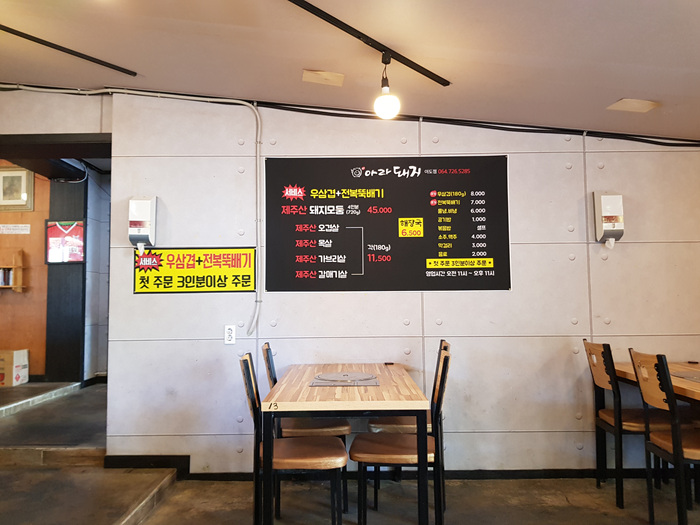 저녁에는 고깃집이라 메뉴판은 고기집 위주로 되어 있습니다. 해장국은 조그맣게 메뉴판으로 표시되어 있습니다.