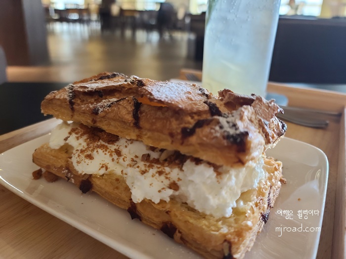 디저트를 사랑하는 분들이라면 일부러 이곳에 방문해도 절대 실패할 일이 없을 것 같았다. 이 카페만의 트렌드를 확실히 마련한 그런 곳이기 때문이었다. 디저트 종류는 휘낭시에부터 케이크 그리고 크럼블, 크로플등이 있고 이 곳에서만 특별히 맛볼 수 있는 누네띠네 모양에 크림이 올라간 것이 이색적이었다.