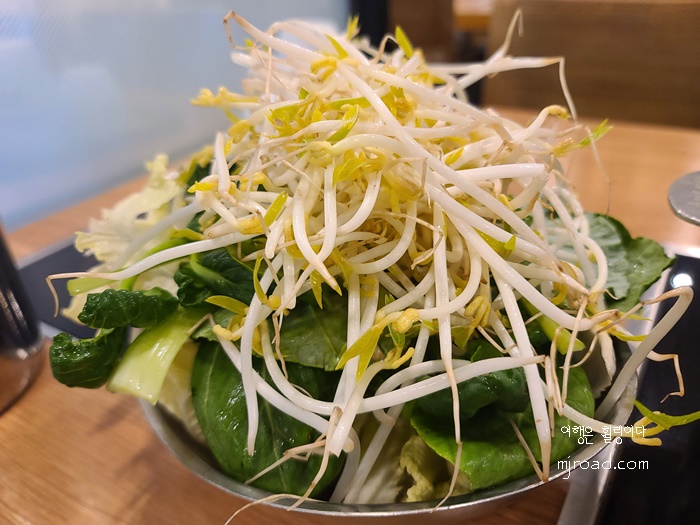 오리지널 육수와 호주 청정우가 나오고 처음 주문할때 사이즈 업을 하면 1인 당 50g의 소고기를 3,000원에 이용 가능하다. 고기를 좋아한다면 그 점 참고하면 좋을 듯 하다. 우린 채소 위주로 먹었기 때문에 따로 소고기를 추가하지 않았다.