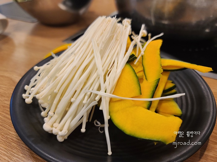 오리지널 육수와 호주 청정우가 나오고 처음 주문할때 사이즈 업을 하면 1인 당 50g의 소고기를 3,000원에 이용 가능하다. 고기를 좋아한다면 그 점 참고하면 좋을 듯 하다. 우린 채소 위주로 먹었기 때문에 따로 소고기를 추가하지 않았다.