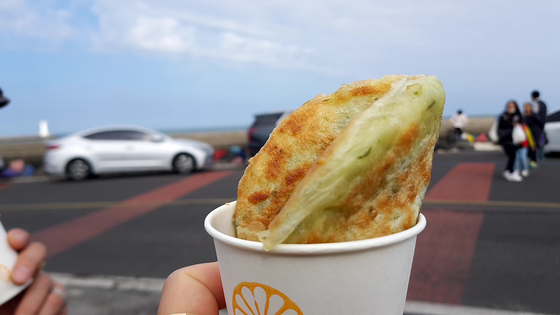 제주도에서 유명한 빙떡입니다. 돌돌 말아 놓은 속 안에는 무채가 들어가 있습니다. 도시인들에겐 조금 생소하지만 이곳 제주도에는 특색있는 음식이기도 하지요.