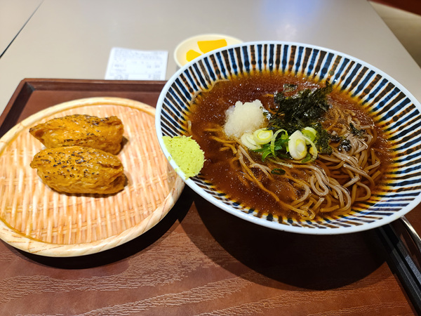 현금을 계산할때는 직원이 계산해 주기도 하지만 대부분 카드로 결재하기에 키오스크를 이용한다. 요즘에는 어딜가나 키오스크로 메뉴를 정해 결재하는 방식이 자연스럽다. 뭘 먹을까 고민하다 간단하면서도 빨리 나온다는 냉메밀국수 & 유부초밥세트를 주문했다. 가격은 조금 비싼 편이긴 하지만 그래도 공항이라서 그렇겠지라는 생각으로 먹으면 마음이 편하다.