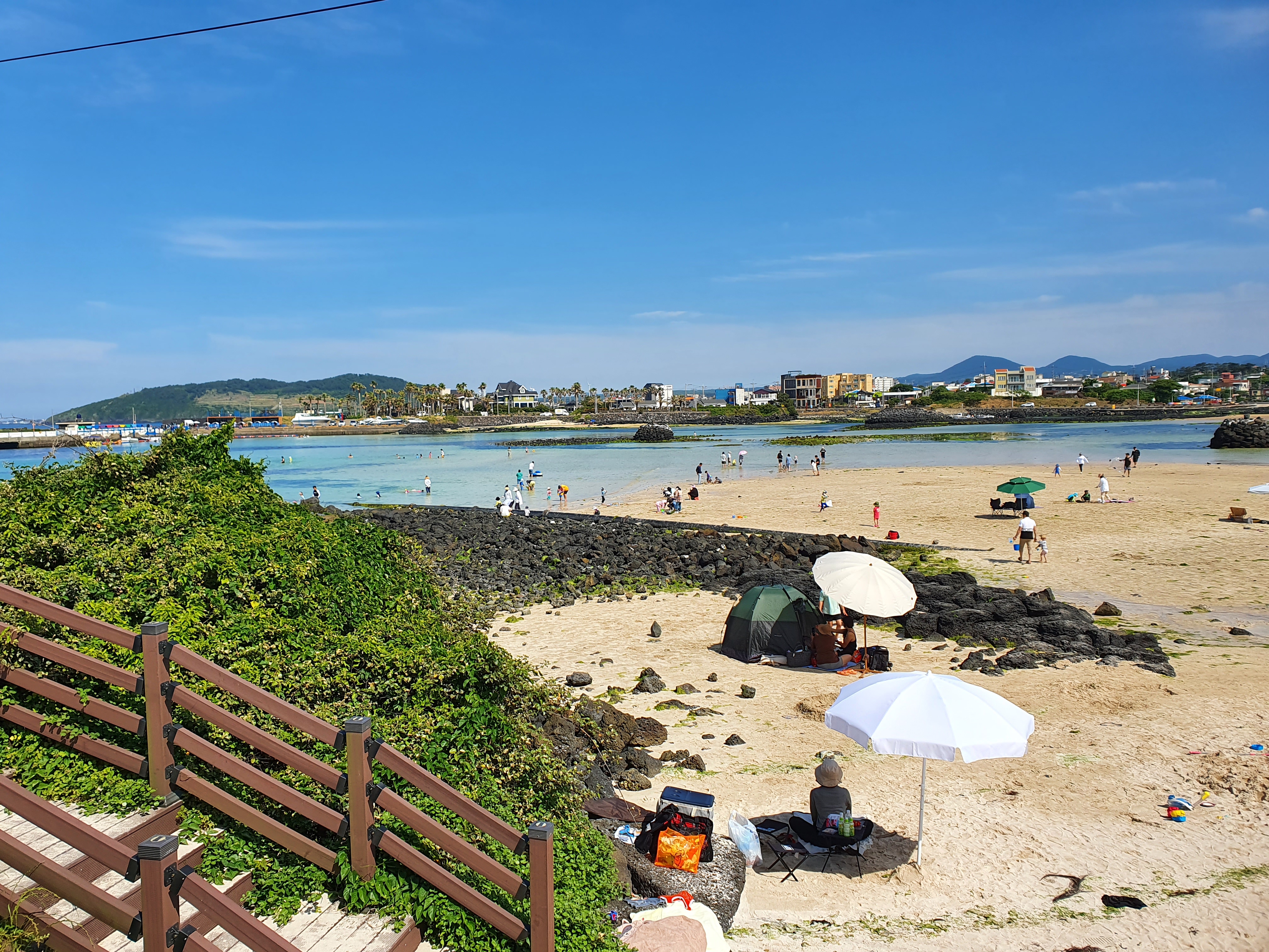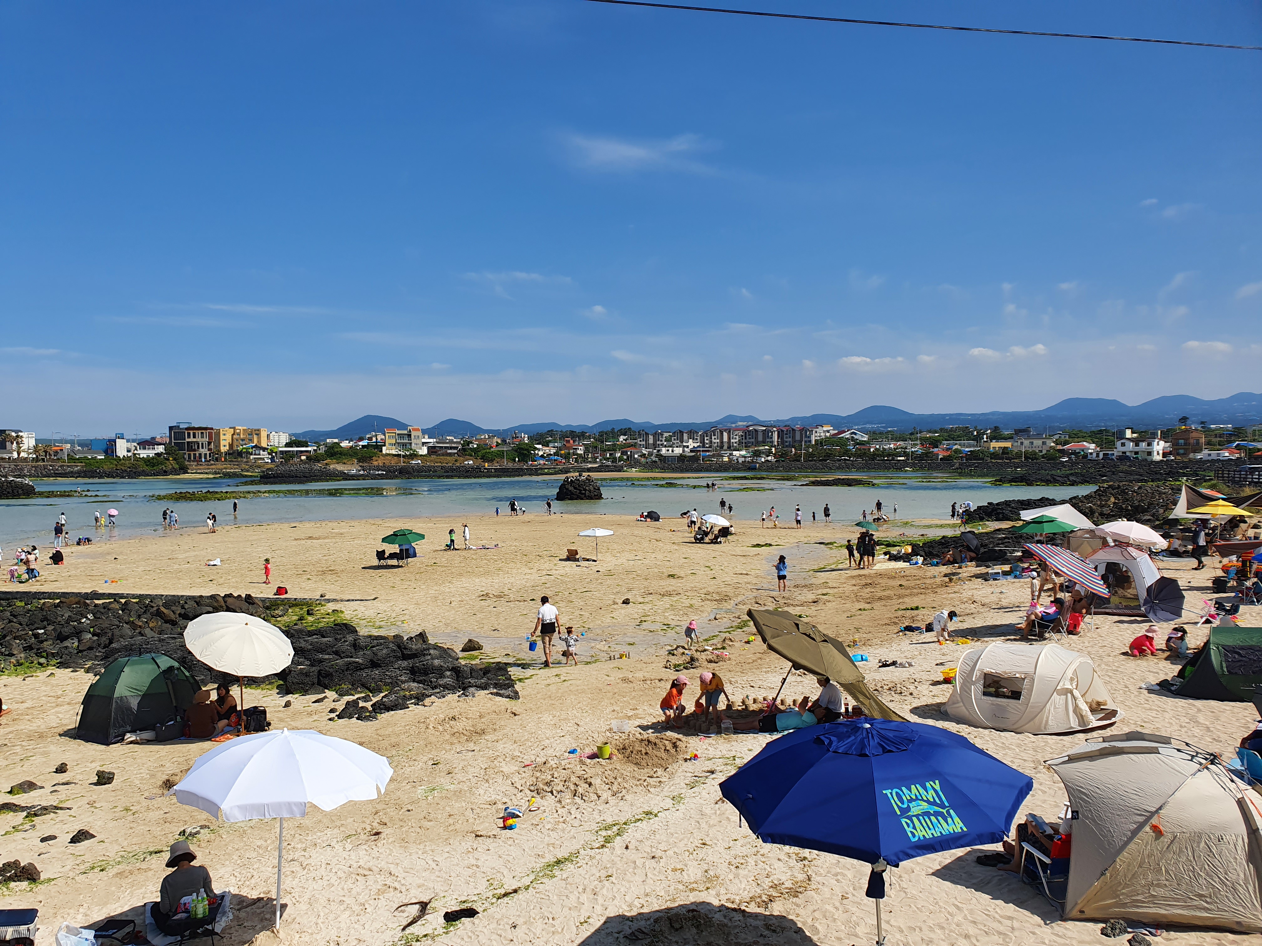 조용한 피서지를 원한다면 신흥 해수욕장이 좋고요. 주변 편의시설이 너무도 잘된 곳을 찾는다면 함덕 해수욕장 추천합니다.