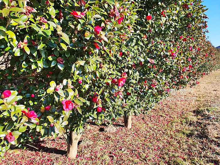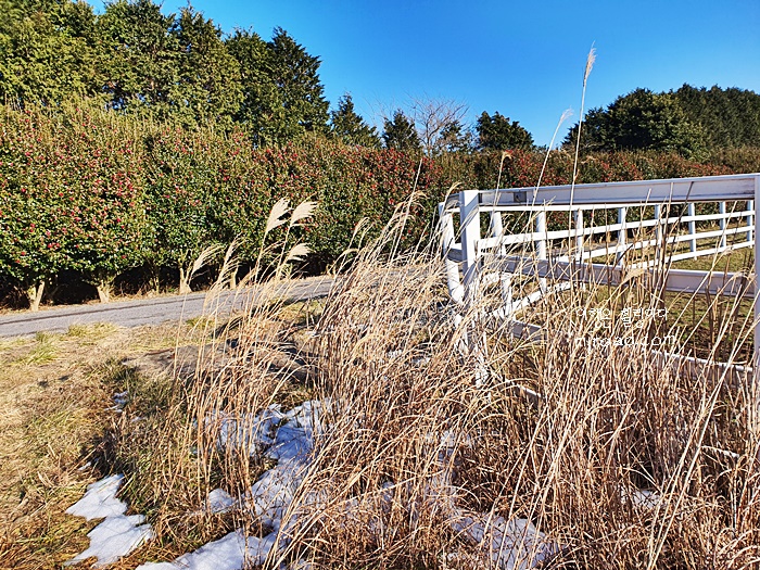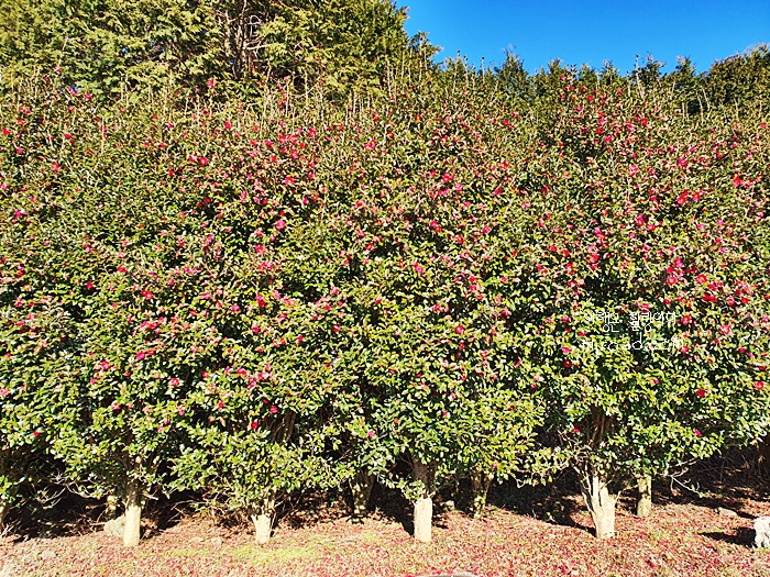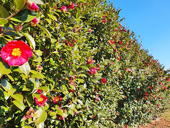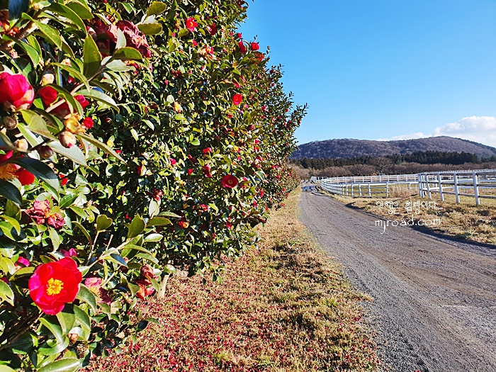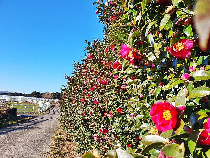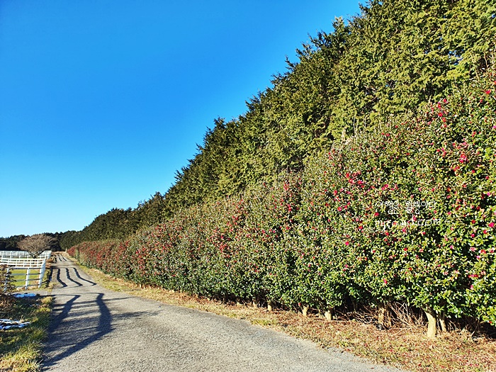 말이 있는 목장 주변에 이렇게 긴 동백꽃길이라니....만개할 때쯤엔 정말 환상적인 동백꽃을 보지 않을까싶다.