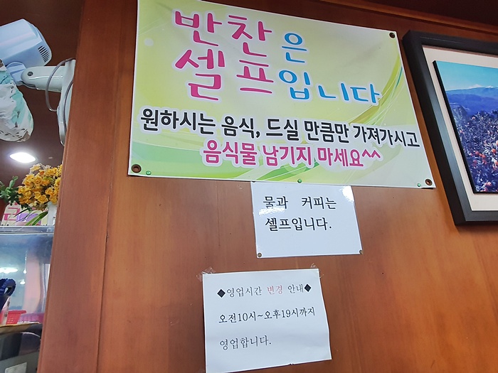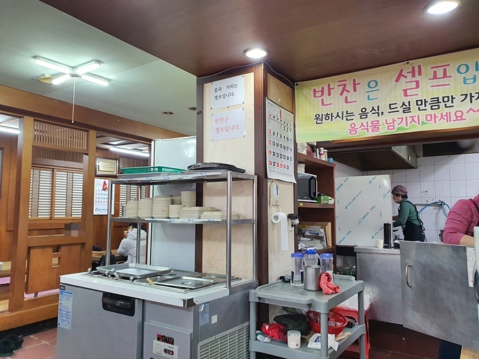 참고로 말하자면 모든 음식을 주문하면 주 메뉴만 주방에서 나오고 나머지는 손님이 직접 다 갖다 먹어야 한다. 사실 별 음식이 따로 나오는 것이 아니기에 대부분 사람들은 그려려니 하고 갖다 먹는다. 그런 거에 비하면 가격이 결코 저렴한 편은 아닌 셈이다. 순두부와 밥만 갖다 주니....