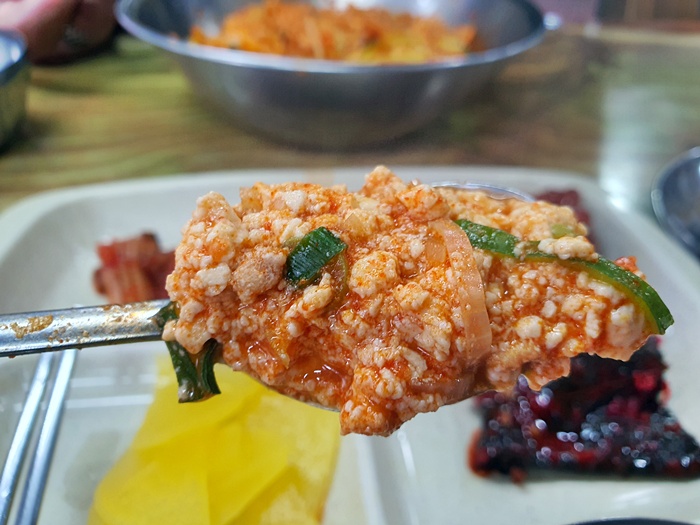 제주도민들이 소울푸드라고 하는 순두부가 나왔다. 여느 순두부와 별 차이가 없긴 하지만 예나 지금이나 맛은 똑같으니 추억의 음식이라고 하는 듯하다. 맛은 매운맛과 보통맛 선택이 가능하니 주문할 때 미리 말하면 된다.