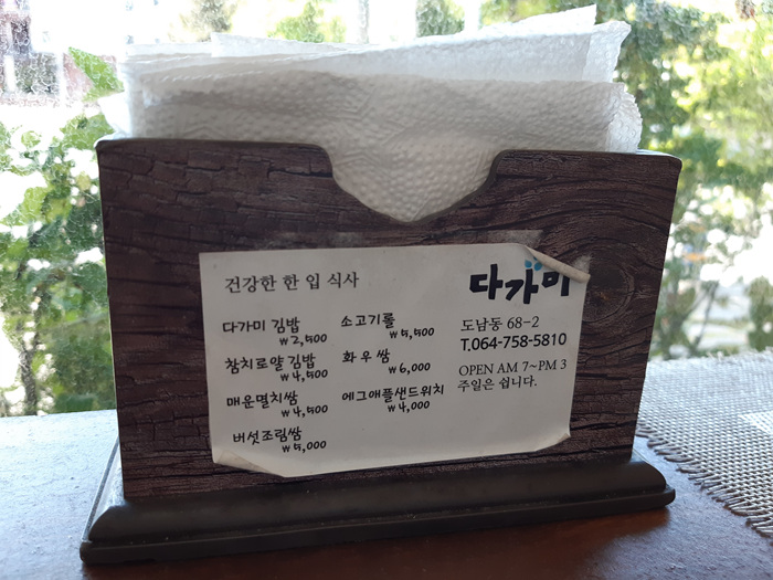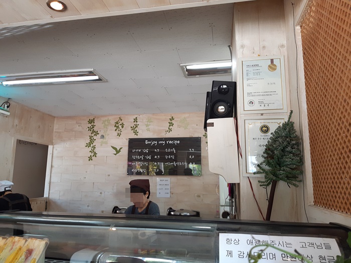 황금연휴를 맞아 제주도에 여행 온 관광객들이 많이 늘었습니다. 관광지마다 코로나19가 언제 왔냐는 듯 사람들이 인산인해를 이루고 있는 현시점..관광객들 위주의 음식점들은 손님이 많다고 마냥 즐거워하지도 못하는 참 씁쓸한 현실입니다. 그렇다고 마냥 손님없이 기다리는 것도 좀 그렇고... 하여간 오늘은 제주도에서 한 줄만 먹어도 배 부른 김밥을 소개합니다. 이 김밥집은 테이크아웃이 90%를 차지할 정도이니 나름 거리두기 동참에는 괜찮은 맛집일 듯 해서요..