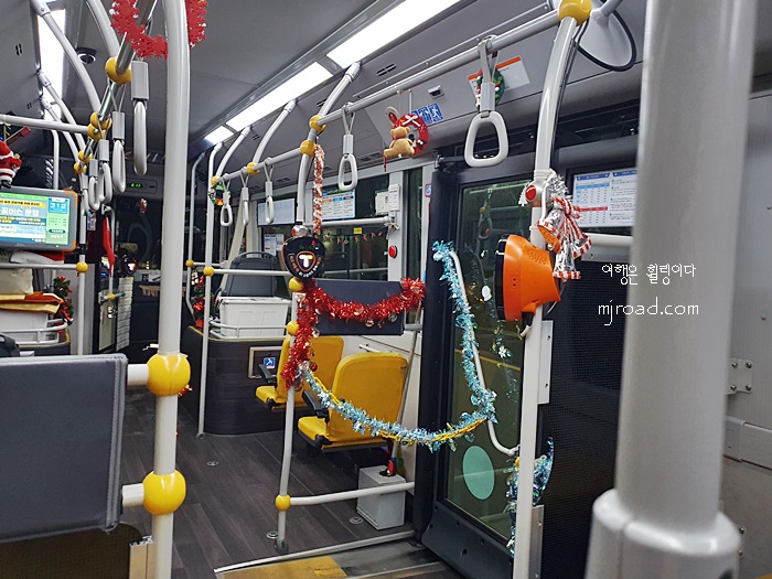 그렇게 화려하진 않지만 생소한 버스 안 모습에 입가에 미소가 지어졌다. 크리스마스가 한참 지났지만 연말 내내 운영하다 보다. 1월 초에 이런 모습이라니...