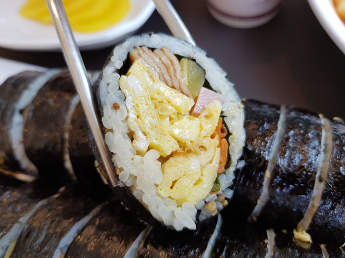 생각보다 김밥이 크고 양이 알차서 정말 놀랐습니다. 제주도 유명한 김밥집과 별 차이가 없어 보이더군요.