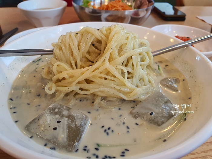 주문한 음식이 나왔는데 생각보다 푸짐한 곱배기의 양이었다. 단돈 9,000원에 검은 콩국수를 먹을 수 있다니... 제주도에선 흔하지 않는 일이다. 그것도 유명한 관광지에서 말이다.