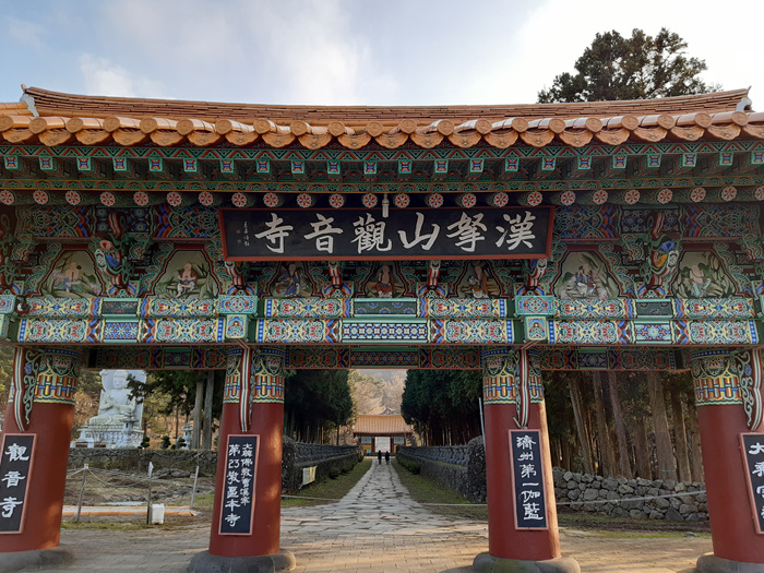 관음사 입구에 들어서면 아름다운 길이 반겨 줍니다. 그런 이유에서인지 사찰입구에 들어서는 순간 마음이 푸근한 느낌이 많이 듭니다. 종교와 상관없이 아름다운 사찰의 풍경은 누구나 가고 싶은 곳이기도 하지요.