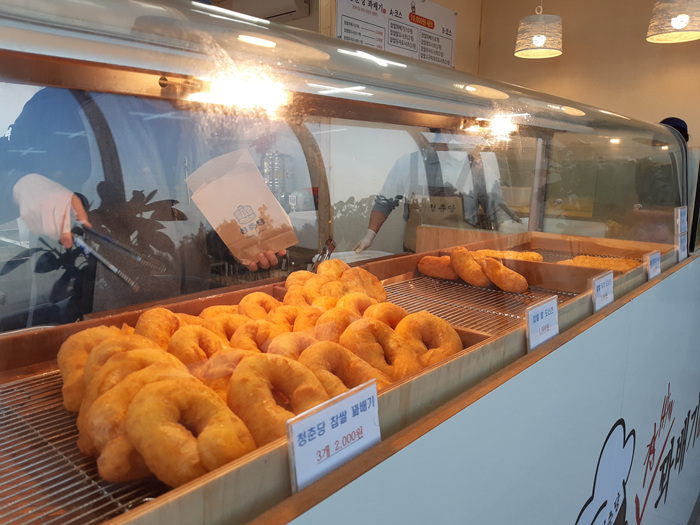 공항가는 길에 출출하기도 해 주차를 하고 꽈배기를 사러 들어 갔습니다. 꽈배기 가격은 여느 꽈배기집과 비슷한 수준입니다. 앙금이 들어가면 1,000원 안 들어가면 3개 2,000원 정도의 가격입니다.