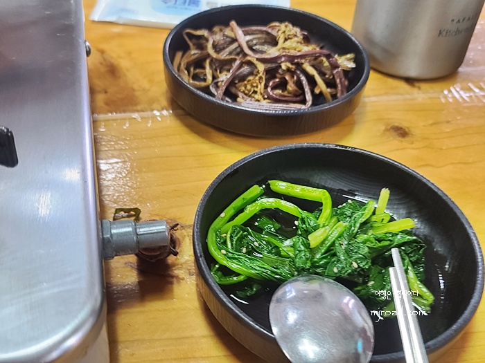인터넷으로 검색하니 음식 메뉴도 다양해 우린 들어가기로 했다. 멀리서 보니 렌트카가 몇 대 있으니 왠지 더 안심이 된다고나 할까... 성읍1리사무소 정류소에서 조금 떨어져 있긴 했지만 저녁 장사를 한다기에 얼른 가보기로 했다. 메뉴도 다양했고 가격도 생각보다 비싸지 않았다. 그런데 메뉴 중에 눈에 띄는 것이 있었는데 순살갈치조림이었다. 평소 생선 가시 발라서 먹는게 귀찮고 불편했던터라 우린 당장 그 메뉴를 주문했다. 주문을 하자마자 정갈한 반찬이 차려졌다. 별거 없어 보이는 반찬이긴 했지만 깔끔하니 괜찮았다. 반찬 맛을 보니 간이 슴슴하니 내 입맛에도 맞았다.