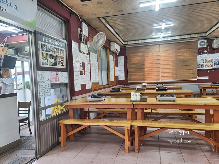 역시나 이곳도 넓은 내부 만큼이나 손님에 있느 곳은 몇 테이블 없었다. 제주도가 일찍 저녁장사를 접는 이유도 있겠다라는 생각이 조금은 들기도 했다. 문 입구 주변에 앉았는데 유독 눈에 띄는 내용이 붙어 있었다. 한식대첩 제주대표로 나갔나보다. 주변엔 유명 연예인 싸인도 붙어 있었다.