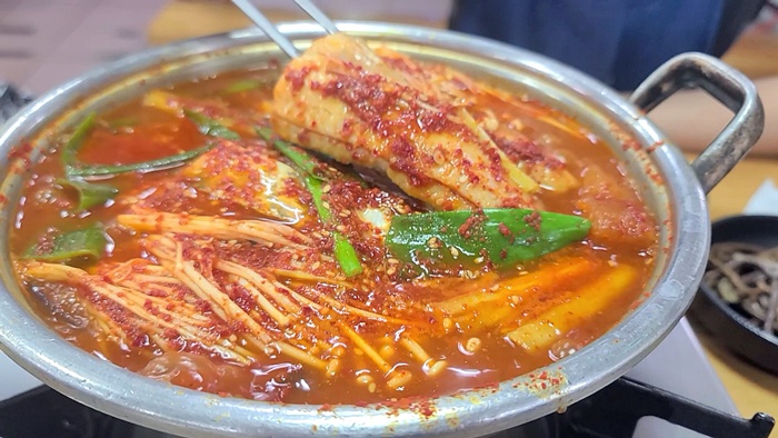 잠깐 이곳저곳 구경하다보니 우리가 주문한 순살갈치조림이 나왔다. 2인 분 치고는 양이 꽤 많아 보였다. 무엇보다도 맛있어 보인다는 생각이 비주얼에서도 들어났다. 가스렌지에 올려진 조림은 한소쿰 더 끓여줘야 한단다. 배가 무척 고팠기에 기다리는 시간도 어찌나 길게 느껴지던지 ...