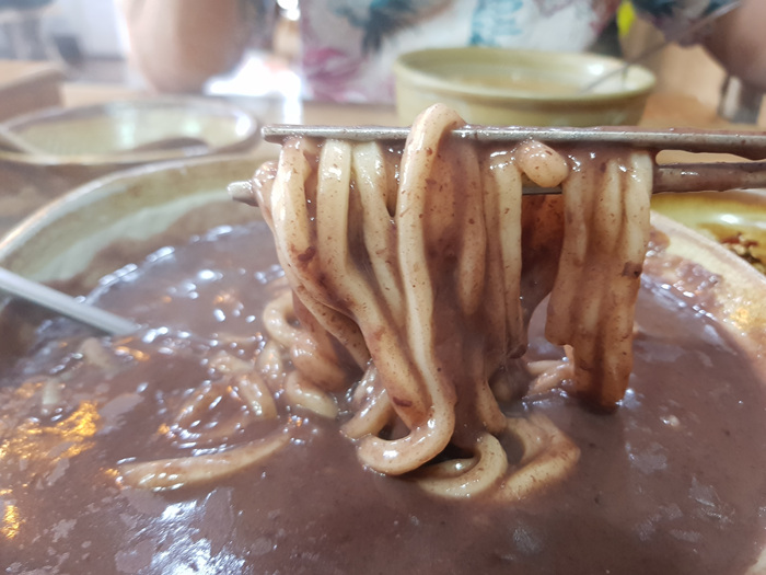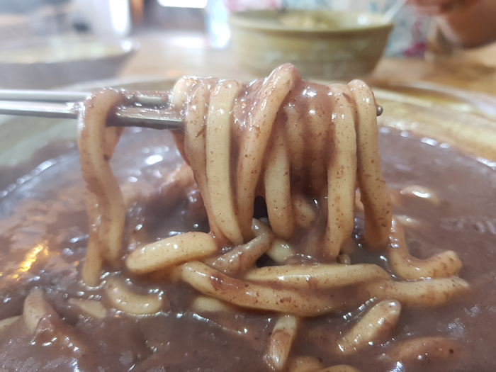 걸죽한 팥국물이 건강해지는 맛입니다. 칼국수 양도 푸짐했네요.