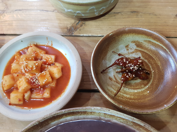 찬은 깍두기와 고추지가 나옵니다.