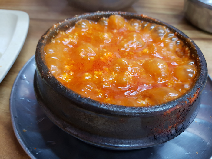 제주도 사람들의 추억의 메뉴 중 하나 순두부.... 그 맛은 과연? 맛있습니다. 매콤하고 비리지 않고 정말 괜찮았습니다. 왜 순두부를 많이 드시는지 알겠더군요. 사실 순두부만 있어도 밥 한그릇은 뚝딱할 정도였습니다.