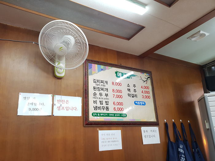 가격은 어느 지역에서나 비슷한 가격이었구요. 오히려 김치찌개, 된장찌개 보다 가격이 저렴했습니다. 순두부 가격 7,000원 ..우린 순두부와 비빔밥을 주문했습니다. 참고로 반찬은 올 셀프로 갖다 먹어야 합니다. 메뉴를 주문하면 딱 메뉴만 나옵니다. 순두부를 주문하면 순두부에 밥만.... 비빔밥을 주문하면 비빔밥에 국이 나오지요. 처음 가시는 분들은 조금 당황하실 듯 하지만 그래도 자세히 안내해 줍니다.
