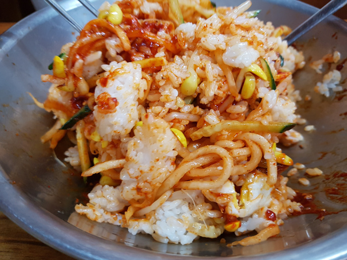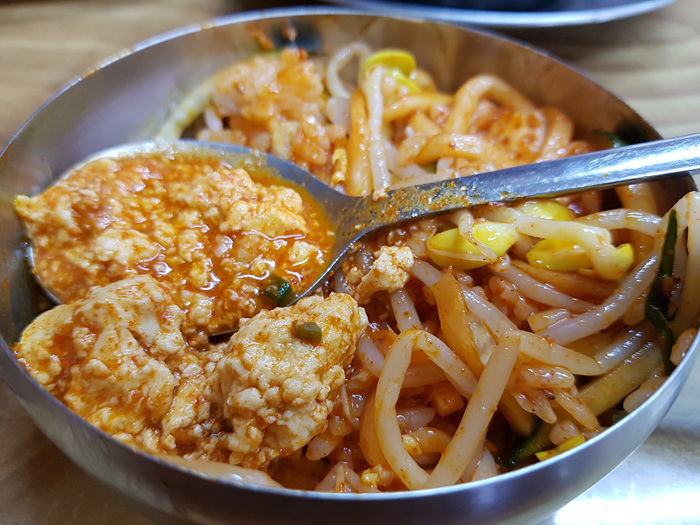 비빔밥은 그렇게 특별하진 않지만 그래도 한끼 식사로 손색이 없었습니다. 고추장이 조금 많아 순두부에 나오는 밥 한공기를 같이 넣어 비볐네요.